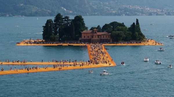 Od inauguracji wyjątkowej, bezpłatnej promenady, pokrytej pomarańczowym materiałem przybywały tam tłumy. Nawet kilka godzin trzeba było czekać w kolejce, by "przejść po jeziorze", czyli po platformach na jego tafli. Dzięki specjalnemu oświetleniu kładka otwarta była czasem także w nocy, o ile pozwalała na to pogoda.