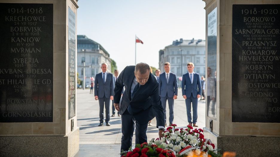 - Obchody 15 sierpnia, dnia Wojska Polskiego, będą odbywać się w Katowicach, dlatego, że jest to okręg wyborczy obecnie urzędującego premiera - stwierdził lider Platformy Obywatelskiej. Grzegorz Schetyna wraz z kierownictwem partii złożyli wieniec przed pomnikiem marszałka Józefa Piłsudskiego i przy Grobie Nieznanego Żołnierza.