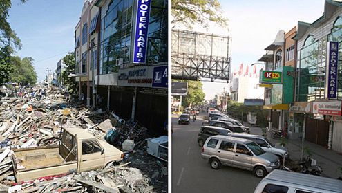 Indonezja, jako położona najbliżej epicentrum podwodnego trzęsienia ziemi, które spowodowało straszliwe w skutkach tsunami z dnia 26 grudnia 2004 roku, została dotknięta najbardziej. Dwie trzecie z ponad 200 tysięcy zabitych przez falę osób pochodziło z indonezyjskiej prowincji Aceh. Poziom strat był trudny do oszacowania - olbrzymie zniszczenia w infrastrukturze publicznej były odbudowane latami. Przedstawiamy kilka efektów - trwającej od 2005 roku odbudowy.