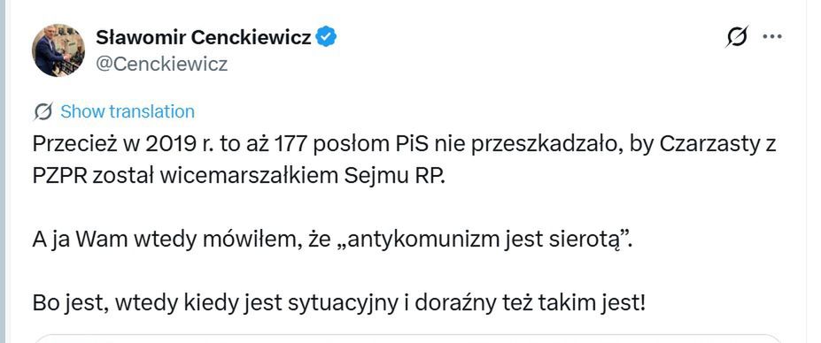 PiS-u nie oszczędził nawet bliski współpracownik Prezydenta Nawrockiego. Szef BBN Sławomir Cenckiewicz również przypomniał głosowanie z 2019 r. Wytknął je posłom PiS we wpisie na platformie X.