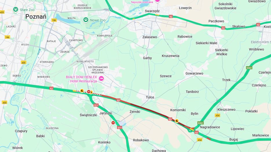 Jak informowały GDDKiA i spółka Autostrada Eksploatacja, korek związany był z przebudową obwodnicy Poznania - na węźle Poznań Krzesiny drogowcy malowali oznakowanie poziomie, w związku z czym ruch odbywał się jednym pasem.
