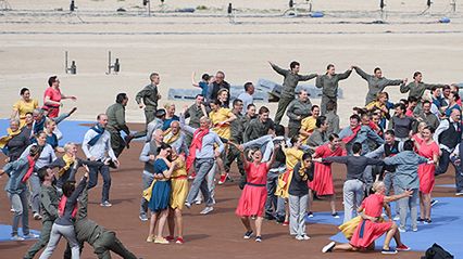 W spektaklu przypominającym o wydarzeniach sprzed 70 lat wzięło udział 650 statystów oraz pięciuset wojskowych muzyków.