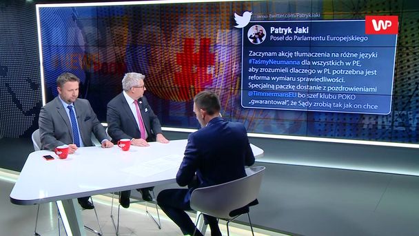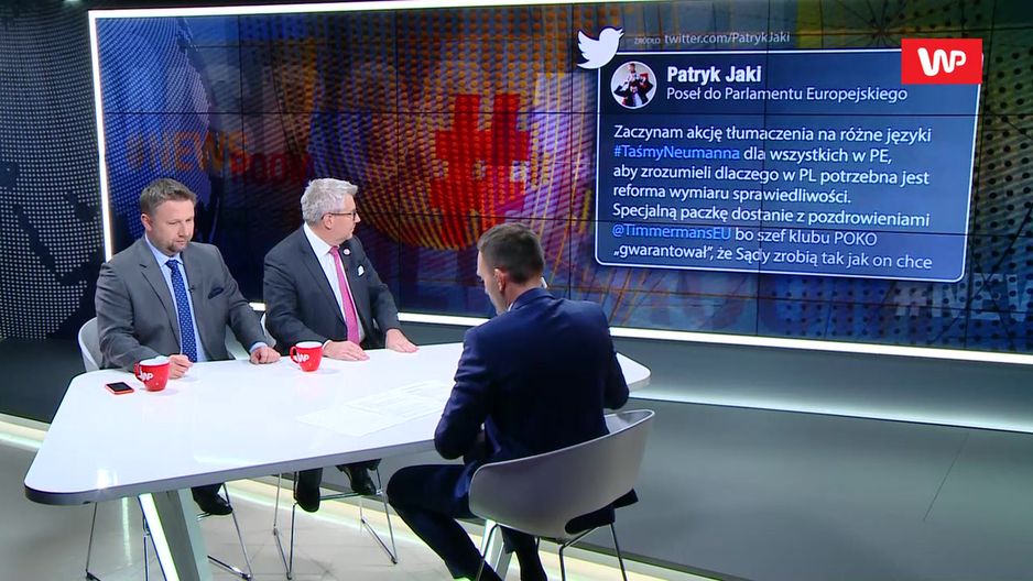 Patryk Jaki ogłosił na Twitterze, że rozpoczyna akcję tłumaczenia tzw. taśm Neumanna w Parlamencie Europejskim. Po co? W programie WP #Newsroom Ryszard Czarnecki najpierw podkreślił, że trzeba o to zapytać samego Jakiego. Później podkreślił, że "sprawa ma wagę w Polsce", a Jaki chce pokazać w PE, że reforma wymiaru sprawiedliwości w kraju jest potrzebna, bo sądy wolno pracują. Przyznał też, że jemu też zdarza się użyć wulgarnego słowa, ale w przeciwieństwie do Neumanna, nie stosuje go jak przecinka.