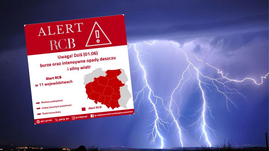 Również Rządowe Centrum Bezpieczeństwa (RCB) wydało alerty dla 11 regionów.