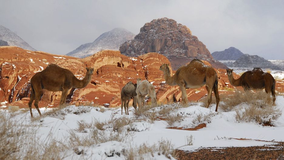 Śnieg rzadko pada w Arabii Saudyjskiej poza najwyższymi szczytami na północy kraju, m.in. Dżabal al-Lauz (Górą Migdałową), o wysokości dorównującej tatrzańskim Rysom. Tym razem opady wystąpiły też jednak w niżej położonych regionach.