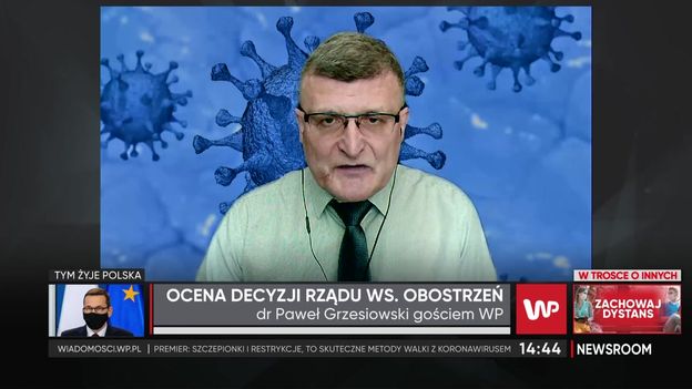 Kościoły pozostaną otwarte w okresie świątecznym, co wywołuje komentarze, mówiące o niekonsekwencji we wprowadzaniu zakresu obostrzeń. - Powinniśmy zmienić podejście i zadbać o bezpieczeństwo, a nie oglądać się na innych. Jeśli ktoś ryzykuje swoim zdrowiem, nie mamy na to wpływu - powiedział w programie "Newsroom WP" dr Paweł Grzesiowski, immunolog i ekspert Naczelnej Rady Lekarskiej ds. walki z COVID-19, pytany o nabożeństwa w kościołach w okresie szczytu zakażeń. Gość Agnieszki Kopacz zaapelował, aby unikać wszystkich miejsc, gdzie gromadzą się ludzie. - Osoby traktujące Kościół jako wspólnotę, powinny mieć baczenie na innych jej członków. Jeśli jest nas za dużo w kościele, to wszyscy jesteśmy zagrożeni - przestrzegał dr Grzesiowski.