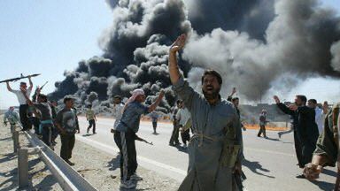 Cywilny konwój amerykański został zaatakowany na autostradzie na wysokości miasta Abu Garib w Iraku, około dwudziestu kilometrów na zachód od Bagdadu. Po ataku napastnicy tańczyli wokół płonących samochodów, wymachując kałasznikowami - podała z miejsca wydarzeń agencja AFP.