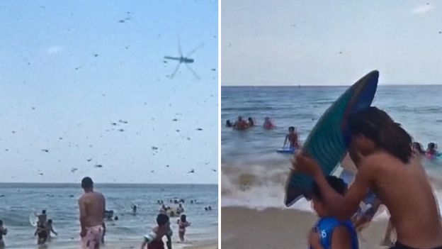 Chwile relaksu na plaży zamieniły się w koszmar. Agencja AP udostępniła nagranie jednej z plażowiczek na Misquamicut State Beach w USA. Na jej materiale widać, że w moment nad plażą pojawił się rój ważek, które obijały się o ludzi z dużą prędkością. Część z plażowiczów broniła się i szukała schronienia, a reszta chwytała za telefony i nagrywała to rzadkie zjawisko. Momentami można usłyszeć krzyk dorosłych i dzieci. Jak podkreśla AP, nie wiadomo, co jest przyczyną ataku ważek u wybrzeży Atlantyku w stanie Rhode Island. Być może było to wynikiem okresu rozmnażania się tych owadów, których okres godowy w USA przypada na końcówkę lipca i początek sierpnia.