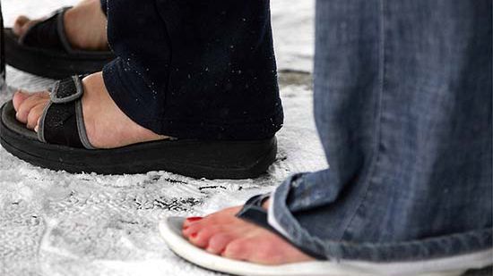 Kaczka w śniegu - pogoda zaskoczyła nie tylko turystów.