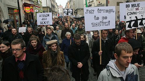 Kilkaset osób przeszło w Krakowie w Marszu Ateistów i Agnostyków, zorganizowanym przez Młodych Wolnomyślicieli. Uczestnicy marszu, w większości młodzi ludzie, nieśli transparenty z hasłami: "Ateizm jest sexy", "Żyj bez grzechu, bądź ateistą", "Nie zabijam, nie kradnę, nie cudzołożę, nie wierzę", "Jak trwoga to po rozum" i inne.