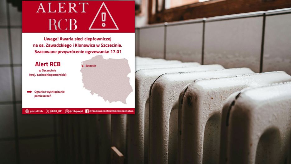 Rządowe Centrum Bezpieczeństwa ostrzega mieszkańców osiedla Zawadzkiego-Klonowica w Szczecinie. Z powodu awarii przerwa w dostawach ciepła i ciepłej wody potrwa do soboty, 17 stycznia. Służby proszą o ograniczanie wychładzania mieszkań.