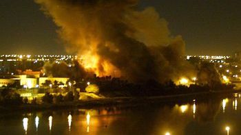 Cały zachodni brzeg rzeki Tygrys, która płynie przez Bagdad, jest zasnuty dymem. Eksplozje słychać było także we wschodniej części miasta, w pobliżu bazy wojskowej El Raszid. Pociski samosterujące nakierowane były także na kwaterę Gwardii Republikańskiej w Bagdadzie. W mieście słychać iracką artylerię przeciwlotniczą.
