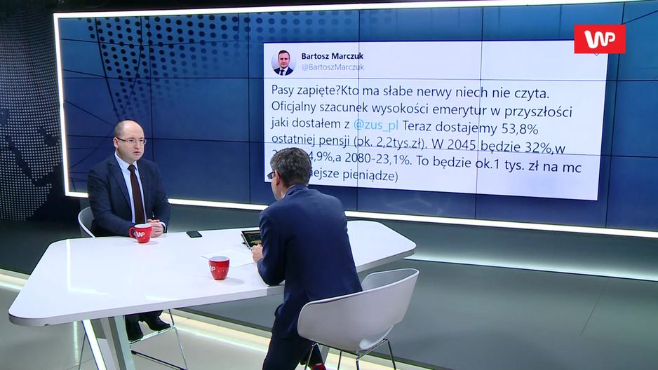 Bartosz Marczuk bije na alarm ws. przyszłych emerytur z ZUS. Co na to europoseł PiS Adam Bielan? - Pan Marczuk, który jest byłym wiceministrem pracy, jest jednocześnie wiceprezesem Polskiego Funduszu Rozwoju, który odpowiada za program PPK. Traktuję jego wpis jako zachętę Polaków do dodatkowego oszczędzania - choćby w ramach PPK. Wszyscy wiemy, że ZUS nie polega na tym, że odkładamy składki, które potem pracują na nasze emerytury, tylko na tym, że osoby, które pracują, płacą ZUS i utrzymują de facto obecnych emerytów - komentował w programie "Tłit". - To kolejny dowód na to, że nasza sytuacja demograficzna bardzo mocno się pogorszy. Musimy robić wszystko, by wspierać politykę prorodzinną - dodał.