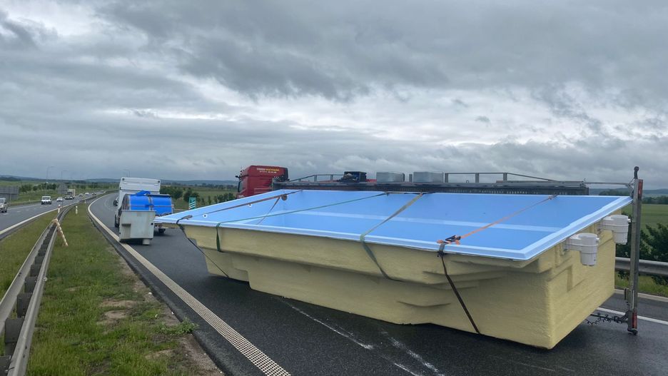 Nietypowa interwencja strażaków miała miejsce na trasie ekspresowej S3 w województwie dolnośląskim. Silny wiatr wywrócił lawetę przewożącą ogromny basen. Zbiornik na ponad godzinę zablokował dwa pasy ruchu.