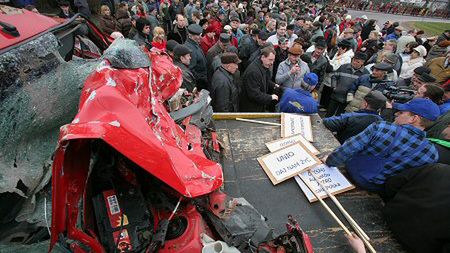 Protest w Warszawie przeciwko budowie obwodnicy Augustowa na terenie Doliny Rospudy.