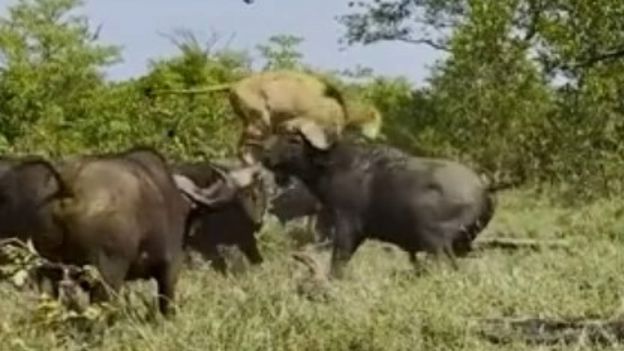 Na kanale Parku Narodowego Krugera pojawiło się ekscytujące nagranie z walki zwierząt, zarejestrowane podczas safari w RPA. Tym razem zmierzyły się ze sobą bawoły oraz lew. Szanse nie były wyrównane. Król zwierząt nie zdołał uciec razem ze swoimi towarzyszami. - Stado próbowało polować na grupę bawołów, ale te wzięły odwet, tupiąc w kierunku lwów. Niestety, starszy samiec nie mógł zejść z drogi ze względu na swoje wcześniejsze obrażenia - relacjonował świadek całego zajścia, 24-letni przewodnik terenowy, Deon Kelbrick, który z grupą turystów uczestniczył w porannym safari w Sabi Sands Game Reserve. Cała walka trwała około 15 minut. Świadkowie byli w szoku. Natychmiast chwycili za telefony. W tym czasie lew był miotany i deptany przez rozwścieczone bawoły. Próbował się bronić i uciekać, ale przeciwnik nie odpuszczał. W końcu z pomocą przybyło stado, które wcześniej się wycofało. Poszkodowany lew przeżył, ale jego stan był ciężki, miał liczne wewnętrzne uszkodzenia ciała. - Powinniśmy zawsze pamiętać, że to jest dzika przyroda i że może być ona czasami okrutna. Zawsze będzie to walka o przetrwanie. Ten samiec lwa przeżył ostatnie cztery lata z naprawdę złym stanem zdrowia, ale wbrew wszelkim przeciwnościom. I będzie walczył do ostatniego tchnienia - podsumował tę nierówną walkę Kelbrick.