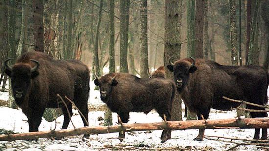 Białowieskie stado żubrów jest największe w kraju. Szacuje się, że obecnie liczy ok. 450 osobników.