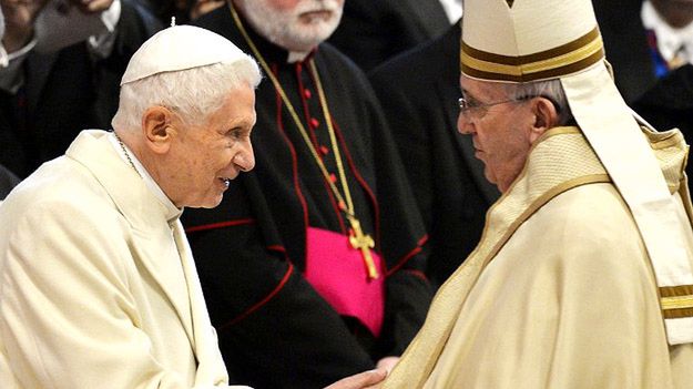 Nie potwierdziły się obawy, że fakt, iż Benedykt XVI mieszka na terenie Watykanu, będzie obciążający dla jego następcy. Franciszek uważa wręcz, że jego poprzednik, który zapowiedział, że będzie żył "ukryty dla świata", powinien być obecny w życiu Kościoła. Argentyński papież widuje się z nim, korzysta z jego wiedzy i doświadczenia. - To jest tak, jakby mieć w domu mądrego dziadka - powiedział Franciszek w jednym z wywiadów. Zaprasza on emerytowanego papieża na doniosłe uroczystości.