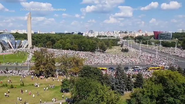 Od 100 do nawet 500 tys. osób - według niezależnych białoruskich mediów - uczestniczy w zorganizowanym w niedzielę w Mińsku marszu wolności. Protestują przeciwko, jak twierdzą, sfałszowanym wynikom wyborów prezydenckich. Tłum zgromadził się w centrum miasta - pod pomnikiem Miasta Bohatera. Stamtąd wyruszyli w kierunku placu Niepodległości, gdzie znajdują się siedziby władz Białorusi. "Odejdź!", "Wierzymy, możemy, zwyciężymy!" - skandują.