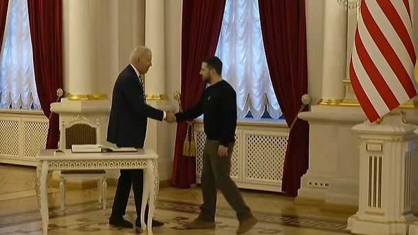 Zaskakująca wizyta prezydenta Stanów Zjednoczonych w Kijowie stała się faktem. Joe Biden spotkał się w poniedziałek z Wołodymyrem Zełenskim prezydentem Ukrainy w stolicy kraju ogarniętego od roku krwawą wojną. Niezapowiadana podróż odbyła się na kilka dni przed rocznicą inwazji Rosji na Ukrainę i kilkadziesiąt godzin przed przylotem Bidena do Warszawy. Nagrania z tego wydarzenia w Kijowie udostępniła agencja Associated Press. Konferencja prasowa obu prezydentów odbyła się w Pałacu Maryjskim, w trakcie której padło wiele ważnych słów. Zełenski zapewnił, że ruch ze strony USA pomoże w finalnym rozstrzygnięciu wojny na korzyść Ukrainy. - To była rozmowa, która rzeczywiście przybliża nasze wspólne zwycięstwo w tej wojnie - przekazał Zełenski. Tymczasem Biden otwarcie przyznał, że Kijów otrzyma wkrótce kolejny pakiet pomocy militarnej o wartości ponad 500 mln dolarów i wbił szpilkę Putinowi, zaznaczając, że pomimo agresji Moskwy, Ukraina przetrwała i demokracja również. - Ukraina przetrwała. Demokracja przetrwała. Amerykanie są z tobą i cały świat też - zapewnił Biden.