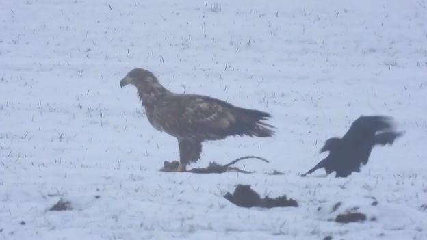 Bielik, największy ptak drapieżny w Polsce, musiał odgonić od siebie kruka, aby w spokoju skonsumować swoją zdobycz. Do sieci trafiło nagranie z Nadleśnictwa Lubliniec, na którym widać jak kruk dokucza bielikowi w walce o pożywienie. Ofiarą była sarna potrącona przez samochód. Zwierzę nie przeżyło wypadku i stało się przysmakiem dla okolicznych drapieżników. Padliną zainteresował się bielik, który nie zamierzał dzielić się zdobyczą. Szybko zauważył to kruk, który nękał naszego największego ptasiego drapieżnika dobrych kilkanaście minut. Polski król przestworzy sukcesywnie odganiał kruka, nie robiąc mu przy tym żadnej krzywdy. Oba ptaki odleciały później w swoje strony. Kruk nie dostał się do padliny. Leśnicy pochwalili się niezwykłym nagraniem, by podkreślić, jak bardzo różne od siebie są to ptaki. Sama wielkość bielika robi wrażenie. Jak podano w opisie nagrania, rozpiętość skrzydeł kruka to ok. 125 cm, przy aż 250 cm u bielika. Krótkie wideo poruszyło internautów, którzy wstawiali swoje zdjęcia z obserwacji największych ptaków drapieżnych w Polsce. "Po zdjęciach wygląda na to, że jeden bielik ma na utrzymaniu jakieś trzy kruki" - żartował jeden z internautów. "Piękne ptaszyska" - skomentowała inna osoba.