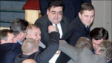 Posiedzenie Dumy, niższej izby rosyjskiego parlamentu, przekształciło się w burdę. Deputowani użyli pięści, by wyładować furię z powodu sporu w sprawie wyników lokalnych wyborów.