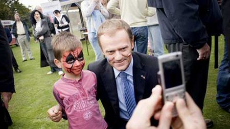 Po zamkniętym dla prasy śniadaniu zaplanowany jest wyjazd do Kirkcaldy. Nie dość, że burmistrz ma polskie korzenie, to jeszcze urodził się tam ojciec liberalizmu Adam Smith. Trudno o bardziej symboliczne miejsce. Trzy lata temu w tej 60‑tysięcznej miejscowości mieszkało kilkunastu Polaków. Teraz szacuje się, że jest ich ponad tysiąc i ciągle przybywają nowi. Większości z tych, którzy przyszli na spotkanie z Tuskiem, nie trzeba przekonywać do głosowania na PO. Ale kampania idzie na całego. Lider PO pozwala sobie wymalować biało‑czerwoną flagę na lewym policzku. Dla równowagi – na prawym flagę Szkocji. Chwali bigos pani Dominiki, ale dziękuje za kiełbaskę, żeby nie było zdjęć z głupimi komentarzami o kiełbasie wyborczej. No i głaszcze po główce każdego dzieciaka, który mu się nawinie pod rękę. Polakom, z którymi rozmawiają dziennikarze, podoba się, że jest wyluzowany, uśmiechnięty i jak go ktoś zagadnie po angielsku, to w odróżnieniu od prezydenta czy premiera potrafi odpowiedzieć.