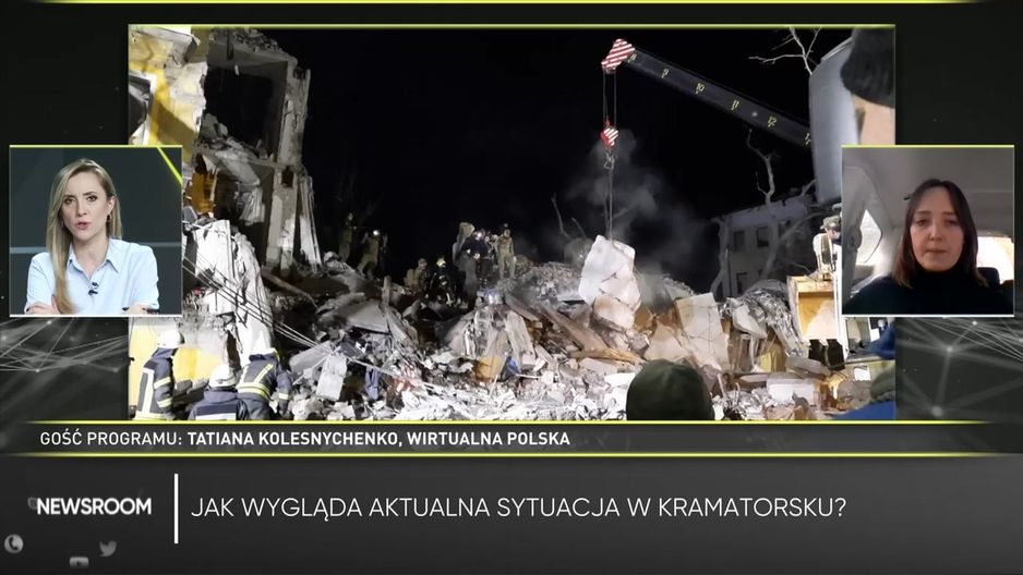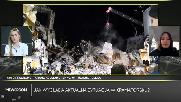 W zrujnowanym przez Rosjan Kramatorsku sytuacja mieszkańców jest dramatyczna. Miasto jest intensywnie ostrzeliwane od kilku dni, a celami ataków nie są obiekty wojskowe czy infrastruktura, a budynki mieszkalne. O sytuacji w tym rejonie mówiła w programie "Newsroom" WP dziennikarka Wirtualnej Polski Tatiana Kolesnychenko, która jest w Ukrainie. - Byliśmy na miejscu wybuchu pół godziny po tym, jak w blok uderzył rosyjski pocisk. To cud, że kogokolwiek udało się tam uratować. Budynek złożył się jak domek z kart. Akcja ratownicza to był wyścig z czasem, co chwilę wyłączano sprzęt, by nasłuchiwać, czy ktoś woła pomocy - mówiła. Dziennikarka relacjonowała w rozmowie z Agnieszką Kopacz-Domańską, jak wygląda sytuacja w Kramatorsku. - Ludzie, którzy zostali w mieście, wyrobili sobie już pewną odporność. W Kramatorsku nie ma paniki. Wszyscy liczą się z tymi konsekwencjami, jakie niesie wojna. Sporo osób, które tu zostały, nie jest w stanie porzucić swojego życia i zaczynać go od nowa - dodała.