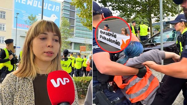 - Rozpoczyna się rok szkolny, jest początek września i dzieci wracają do szkół, dlatego wracamy do takiej powiedzmy codzienności normalnego życia i to jest absurdalne, patrząc na to, że znajdujemy się w centrum kryzysu klimatycznego. W ciągu najbliższych lat będą działy się straszne rzeczy, które będą odczuwać właśnie te dzieci, które dziś wracają do szkoły - stwierdziła aktywistka Julia z Ostatniego Pokolenia, która brała udział w poniedziałek 3 września w akcji blokowania ul. Świętokrzyskiej w centrum Warszawy. Reporter WP Jakub Bujnik był na miejscu i porozmawiał jedną z uczestniczek protestu. Nagrał również moment interwencji policji. Funkcjonariusze siłą usunęli z jezdni kilku aktywistów, którzy wcześniej zdążyli przykleić się do asfaltu. - Nasilające się ekstremalne zjawiska pogodowe, susze czy ulewy. Pewnego dnia te dzieci nie będą mogły wyjść z domu. Będą umierać na udary i przegrzania. Władza nic nie robi. Tymi protestami chcemy bić na alarm - mówiła Julia. Jeden z biorących w proteście mężczyzn, miał ze sobą flagę z napisem "co powiemy naszym dzieciom?". Na pytanie naszego reportera wyznał, że od 2050 r. temperatura na ziemi będzie na tyle wysoka, że "człowiek będzie musiał żyć pod ziemią lub w innym miejscu". Obejrzyj cały materiał z poniedziałkowego protestu Ostatniego Pokolenia w Warszawie.