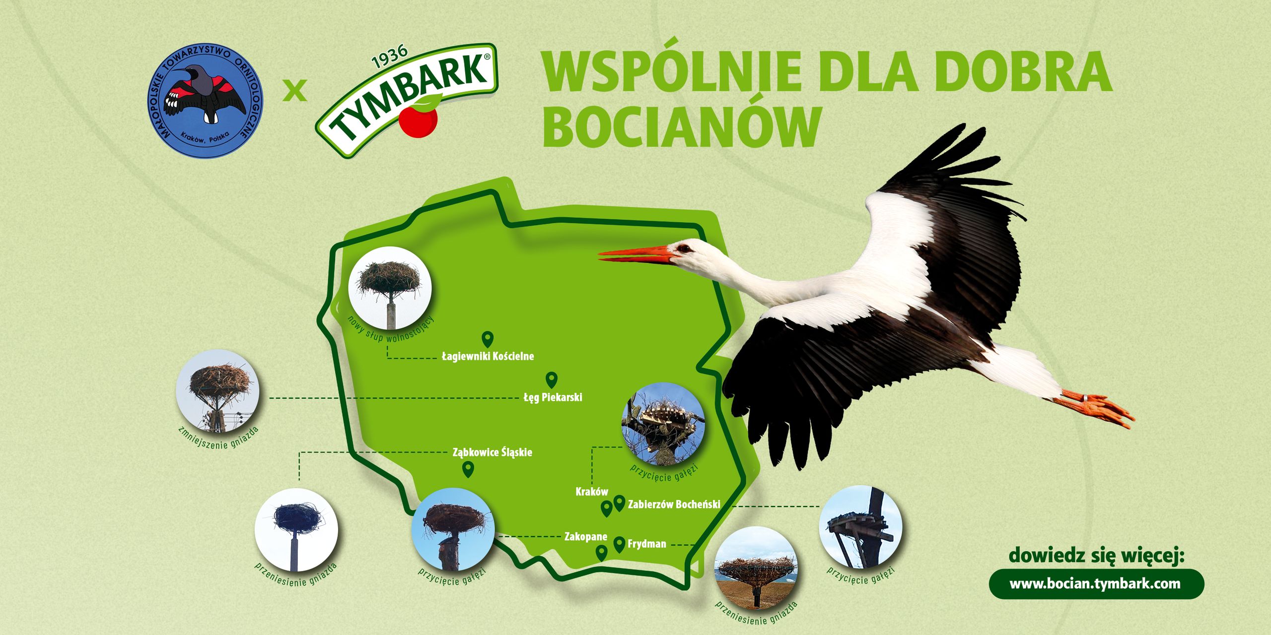 Marka Tymbark wraz z Małopolskim Towarzystwem Ornitologicznym zadbała, by kolejnych siedem par bocianich mogło powrócić do bezpiecznych domowisk.