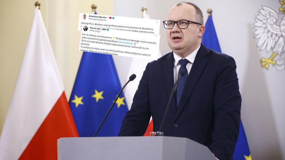 Głos w sprawie zabrał też Patryk Jaki. "'Art 14 Ustawy o prokuraturze 'Prokuratora Krajowego można odwołać tylko za pisemną zgodą prezydenta Andrzeja Dudy'. Za to co zrobił Bodnar będzie odpowiadał karnie i żadna UE mu nie pomoże. To kolejny brutalny atak na ustrój państwa. Wola polityczna wyżej niż ustawa. Wola nie jest źródłem prawa" - napisał w serwisie X.