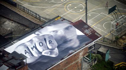 W jednej z najniebezpieczniejszych dzielnic Medellin (stolica departamentu Antioquia) na dachach i fasadach domów pojawiły się gigantyczne czarno-białe zdjęcia dzieci i dorosłych. Niektóre to oczy mocno wpatrzone w przechodniów, inne to portrety z wypisanymi na dłoniach słowami: miłość, harmonia i tolerancja, sprawiedliwość. Projekt artystyczny o nazwie "Bohaterowie bez granic" ("Heroes without Borders") wtopiony w przestrzeń miejską ma na celu zapobiegać wzrostowi przestępczości wśród dzieci w tym niezwykle niebezpiecznym mieście.