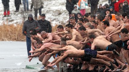 Białoruś. Kąpiel w wodzie, która została poświęcona ma gwarantować dobre zdrowie i kondycję przez cały rok.