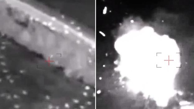 Spektakularny atak nocą w obwodzie donieckim. Ukraińcy pokazali nagranie z momentu silnego uderzenia na rosyjską pozycję na froncie. Żołnierze gen. Syrskiego użyli do tego brytyjskiej haubicy M777, a nagraniem z akcji pochwalili się na platformach X i Telegram. Na udostępnionym materiale widać najpierw poruszający się pojazd Ural, holujący akurat rosyjską haubicę D30. Rosjanie nie mieli pojęcia, że są obserwowani z powietrza przez operatora drona. W pewnym momencie zapadła decyzja, by zniszczyć rosyjski sprzęt amunicją kasetową. Pocisk z brytyjskiej M777 dopadł cel i zrównał go z ziemią, doprowadzając przy tym do potężnej eksplozji.