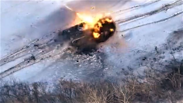 Walki w okolicach Bachmutu nie bez powodu nazywane są "piekłem na ziemi". Do sieci trafiło nagranie z bliskiej odległości, na którym widać jak pocisk artyleryjski eliminuje rosyjski wóz bojowy BMP-1. Ukraińcy działali według precyzyjnie określonego planu i po wyśledzeniu trasy okupantów, uderzono w najmniej oczekiwanym momencie. Pojazd został trafiony w boczną część przedniego pancerza, jednak siła eksplozji była ogromna. Wybuch roztrzaskał na kawałki kabinę kierowcy i poważnie uszkodził gąsienice. W pewnym momencie widać, że jeden z żołnierzy Putina ostatkami sił wychodzi z płonącego BMP i cudem unika śmierci. Jego szczęście na tym się kończy. Według informacji przekazanej przez dowództwo 10. Brygady Sił Zbrojnych Ukrainy, byli to niedawno zmobilizowani żołnierze i nikt z nich nie przeżył. Ukraińcy utrzymują dobrą passę w tym regionie. W piątek rosyjska armia ostrzelała centralną część Bachmutu, uszkadzając okoliczne budynki. Okupantowi nie udało się jednak przeciąć kluczowej trasy Kostiantyniwka-Bachmut, będącej istotnym szlakiem dostaw dla Ukraińców.