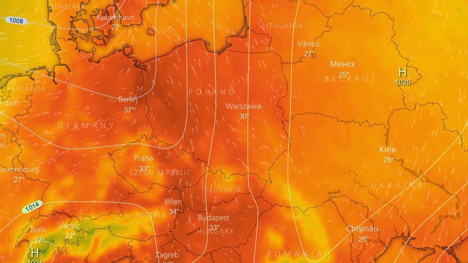 Bruzdę niskiego ciśnienia widać już w prognozie serwisu Windy.com. Polska znajdzie się pomiędzy dwoma ośrodkami wyższego ciśnienia. Jeden znajduje się nad Białorusią, drugi nad Szwajcarią. Doliną, która przebiega dokładnie nad Polską, popłynie gorące powietrze z południa kontynentu. Fala upałów nawiedzi Polskę w środę i czwartek. Z 90-procentowym prawdopodobieństwem wiadomo, że temperatury w woj. lubuskim sięgną nawet 37 stopni C. IMGW wydał ostrzeżenie najwyższego, 3 stopnia. Oznacza ono, że nadejdą upały zagrażające życiu.