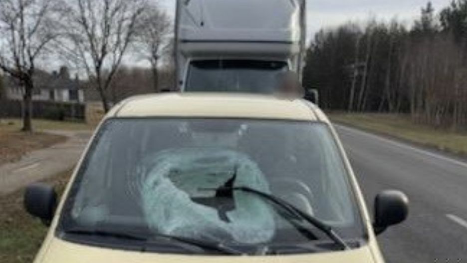 W miejscowości Przędzel na Podkarpaciu doszło do groźnego wypadku. Z dachu iveco bryła lodu spadła na jadącego za nią fiata. Rozbiła przednią szybę osobówki, a kierująca samochodem trafiła do szpitala.