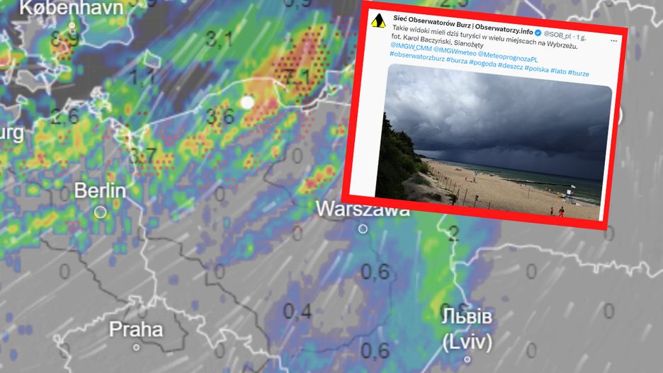 Trudna sytuacja pogodowa na Pomorzu. IMGW ostrzega przed sztormem na Bałtyku. Doszło do licznych incydentów - w Rozewiu piorun uderzył w ludzi, a nad Gdynią zawrócić musiał samolot z prezydentem Andrzejem Dudą na pokładzie.