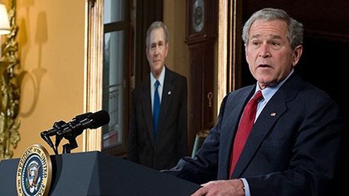 To nie "pan z lustrem". To niezwykle udany konterfekt prezydenta George'a W. Busha, który na wieczną pamiątkę zawiśnie w Hallu Lincolna w filadelfijskim klubie Union League. Autorem portretu jest Mark Carder.