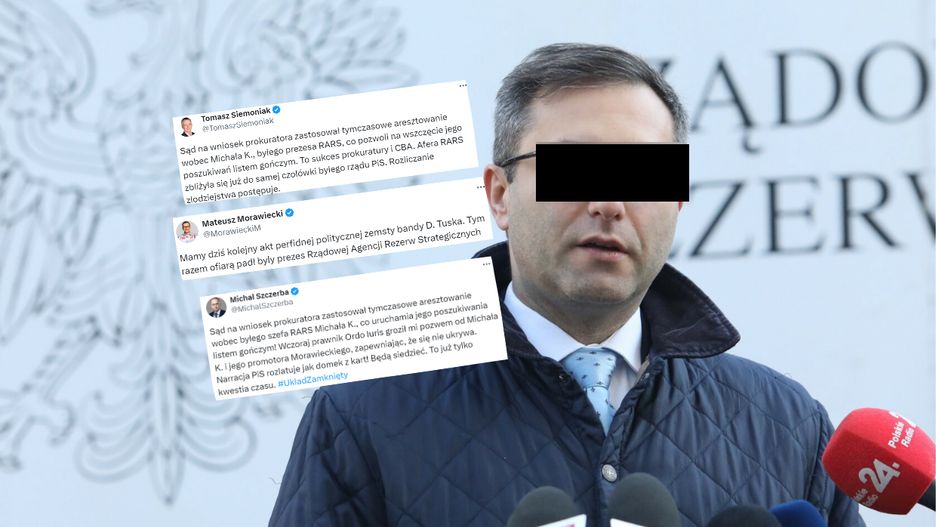 "Sąd na wniosek prokuratora zastosował tymczasowe aresztowanie wobec byłego szefa RARS Michała K., co uruchamia jego poszukiwania listem gończym! Wczoraj prawnik Ordo Iuris groził mi pozwem od Michała K. i jego promotora Morawieckiego, zapewniając, że się nie ukrywa. Narracja PiS rozlatuje jak domek z kart! Będą siedzieć. To już tylko kwestia czasu" - napisał europoseł KO Michał Szczerba.