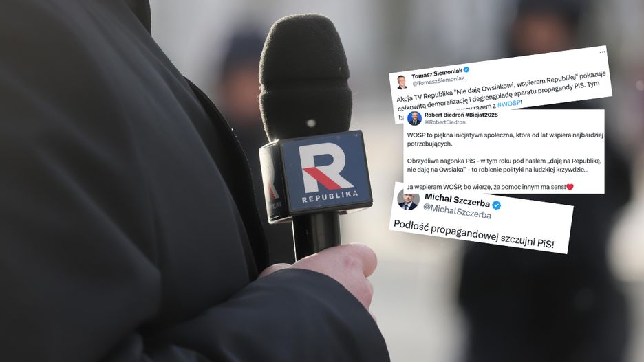 "Obrzydliwa nagonka PiS" czy "podłość propagandowej szczujni PiS" - piszą politycy w odpowiedzi na ogłoszoną przez TV Republikę akcję "Nie daję Owsiakowi, wspieram Republikę", mającą zniechęcić widzów stacji do wpłacania pieniędzy na Wielką Orkiestrę Świątecznej Pomocy. "Tym bardziej bądźmy wszyscy razem z WOŚP!" - komentują inni.