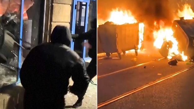 W pewnym momencie grupa zamaskowanych osób ruszyła kierunku biur partyjnych obecnego rządu. Na nagraniach można zauważyć, że dochodziło tam do aktów wandalizmu. Rzucano krzesłami w budynki i policję, spalono kontenery na śmieci, uszkodzono radiowozy. Doszło również do starć z siłami porządkowymi.