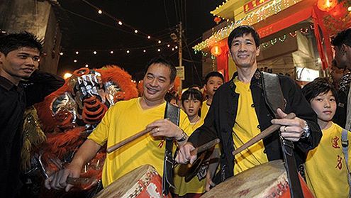 O świcie Nowego Roku gospodarz domu zdejmuje znad drzwi obrazki nianhua. W tym dniu ponownie składa się ofiary przodkom, a następnie odbywa się wspólne świętowanie na ulicach miasta, gdzie w towarzystwie muzyki i eksplozji petard oraz fajerwerków odbywają się tradycyjne tańce lwów. Kulminacyjnym elementem świętowania jest korowód kilkudziesięciu osób niosących wyobrażenie smoka. Zabawy uliczne trwają do późnych godzin nocnych.