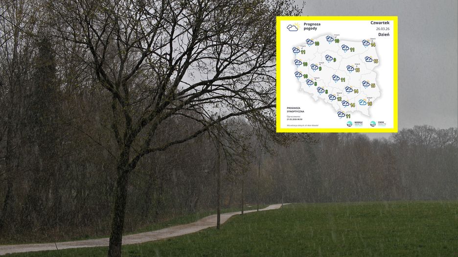 Czwartek przyniesie intensywne opady deszczu od północy kraju po centralną i zachodnią Polskę. Temperatury w tej części kraju spadną do 9-11 st. C. Nieco pogodniej będzie na wschodzie, gdzie termometry będą pokazywać od 15 do 16 st. C.