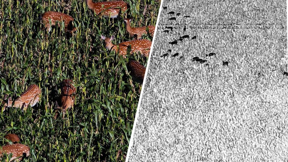 Fundacja Koło Natury, która otrzymała zlecenie precyzyjnego zlokalizowania zbiegłego stada, do zadania użyła zaawansowanego dron. Jak informuje, już po około 7 minutach od startu, udało się zlokalizować liczące kilkadziesiąt sztuk stado, żerujące w uprawie kukurydzy.