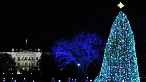 Przed Białym Domem w Waszyngtonie odsłonięto choinkę świąteczną. W uroczystości uczestniczyła rodzina Obamów. Prezydent odczytał przesłanie pokoju a Michelle Obama przeczytała wiersz nawiązujący do Bożego Narodzenia. Piosenkarka Sara Bareilles śpiewała pieśni, wystąpił też "król bluesa" B.B. King.