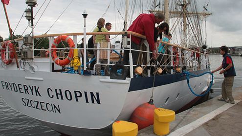 Żaglowiec "Fryderyk Chopin" wypływa z portu w Szczecinie. Żaglowiec wyrusza w trzymiesięczny rejs, podczas którego zawinie do kilkunastu europejskich portów. W każdym z nich zaplanowano wydarzenie promujące Polskę i muzykę Fryderyka Chopina.
