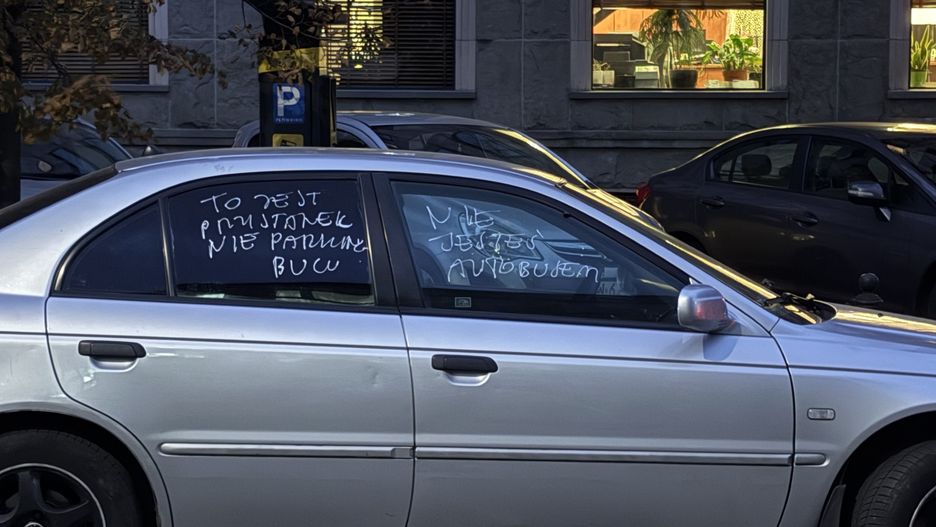 Pierwszego dnia testów do wieczora miałem już dowód, że uczestniczę w bezpardonowej wojnie o przestrzeń w mieście. Idąc chodnikiem, dostrzegam srebrną hondę z napisem nabazgranym markerem na szybie: "To nie jest przystanek, nie parkuj bucu, nie jesteś autobusem". Napisy to ostateczność - wyraźnie zawiodły wcześniejsze próby: zgłoszenia, pouczenia od policji, a może i mandaty.