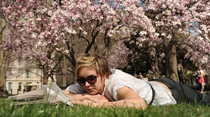 Na zdjęciu Zosia Sztykowski odpoczywa pod kwitnącymi magnoliami w waszyngtońskim parku Lafayette.