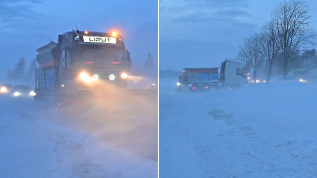 Silny, porywisty wiatr połączony z intensywnym opadem śniegu doprowadził do powstawania gwałtownych zamieci i wysokich zasp, które w krótkim czasie zasypały drogi, uniemożliwiając normalną jazdę.